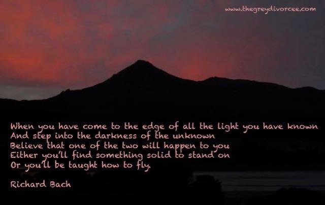 And then, slowly, gradually, she will start learning to love herself.  She will amaze herself by the things she does, even in the midst of that pain and grief.  She will amaze herself with her courage, whether it’s travelling alone, fighting back in the divorce, going to work for the first time in 40 years, getting up and talking in front of groups of people, setting  up her own business, getting that story published… just putting one foot in front of the other day after day after day after day, until one day she will finally look back and see just how far she’s come.  It might not have been the path she’d hoped to travel, but it will still be a good solid path.  A journey to be proud of.